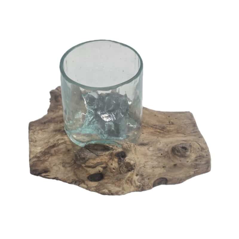 Das Glas schmiegt sich fließend an die Form des Holzes an – eine organische Komposition für dekorative Akzente.