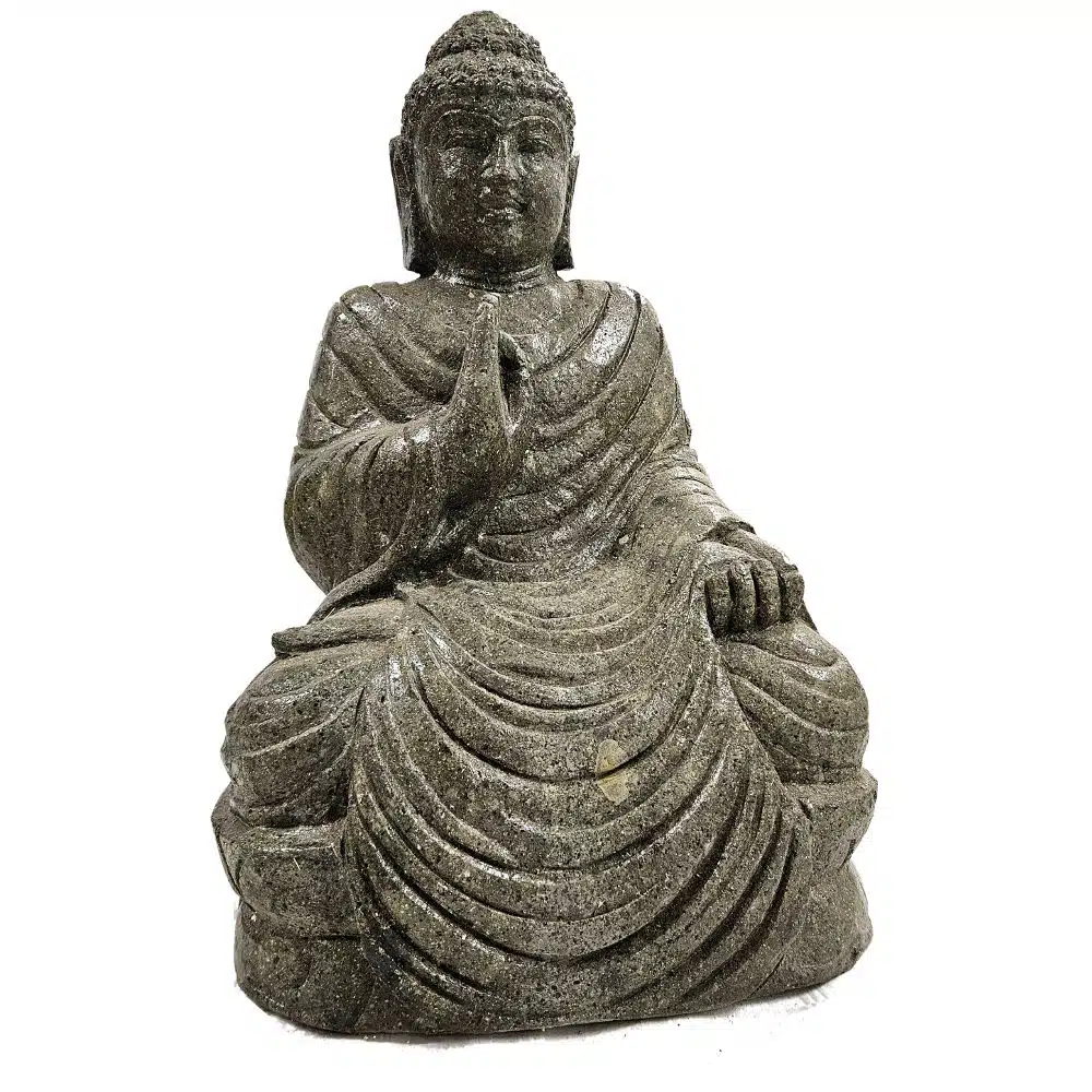 Jede Buddha Statue wird in traditioneller Handarbeit auf Bali gefertigt. Natürliche Variationen in Form, Struktur und Oberfläche sind charakteristisch und machen jedes Stück zu einem unverwechselbaren Einzelstück.