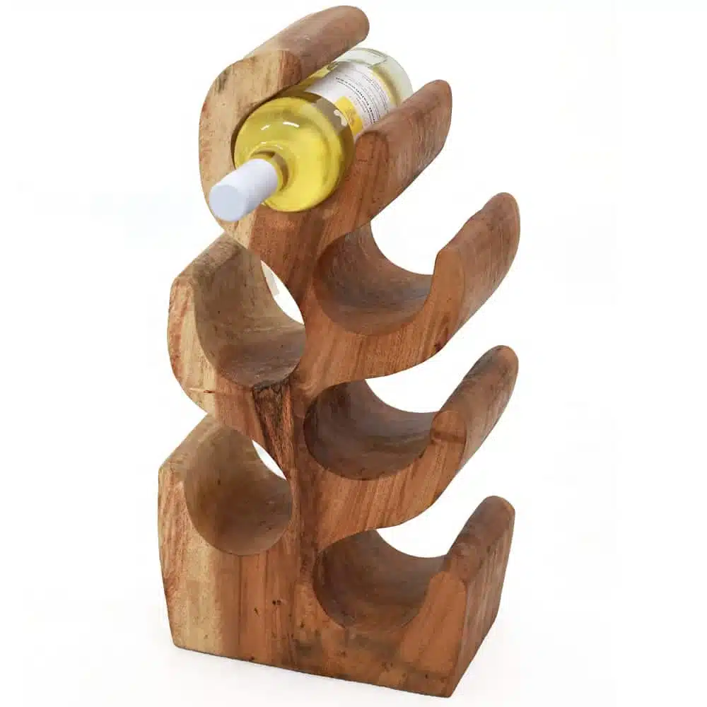 Chandra Weinhalter: Skulpturales Teakholz-Design für 6 Flaschen, 50 cm