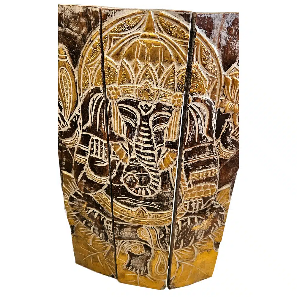 - Design: Dreiteiliges, klappbares Wandbild (Triptychon) mit Relief-Schnitzerei von Ganesha.
