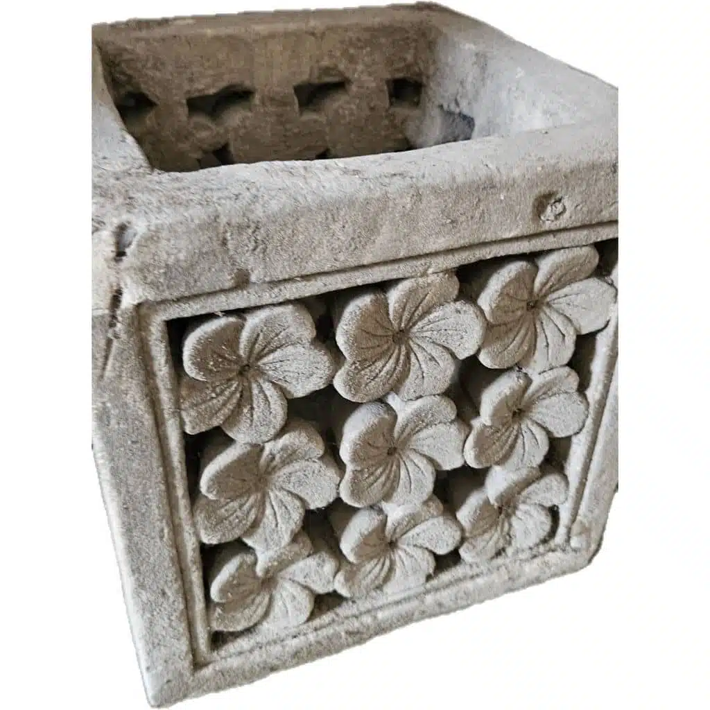 Jede Gartenlaterne „Frangipani“ wird in reiner Handarbeit gefertigt. Natürliche Abweichungen in Farbe, Struktur und Form unterstreichen den individuellen Charakter und machen jedes Stück zu einem Unikat balinesischer Steinmetzkunst.