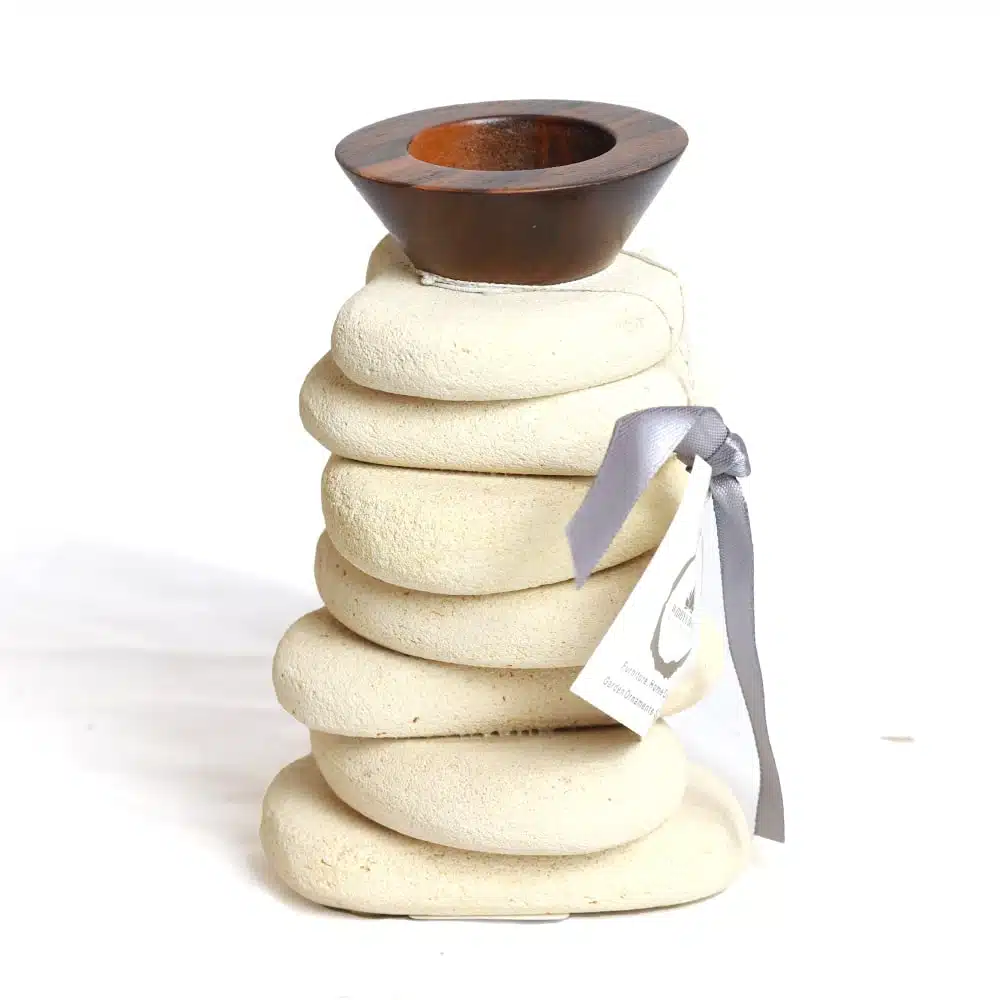 Kerzenständer aus Naturstein und Teakholz – zeitlose Eleganz
