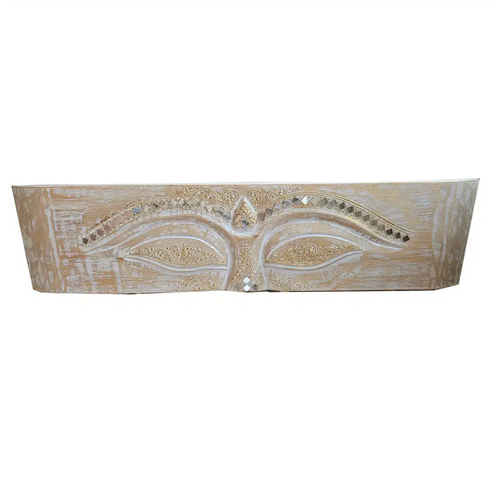 Matajiwa Buddha-Augen aus Albesia, white-washed mit Mosaik, 60 × 20 cm