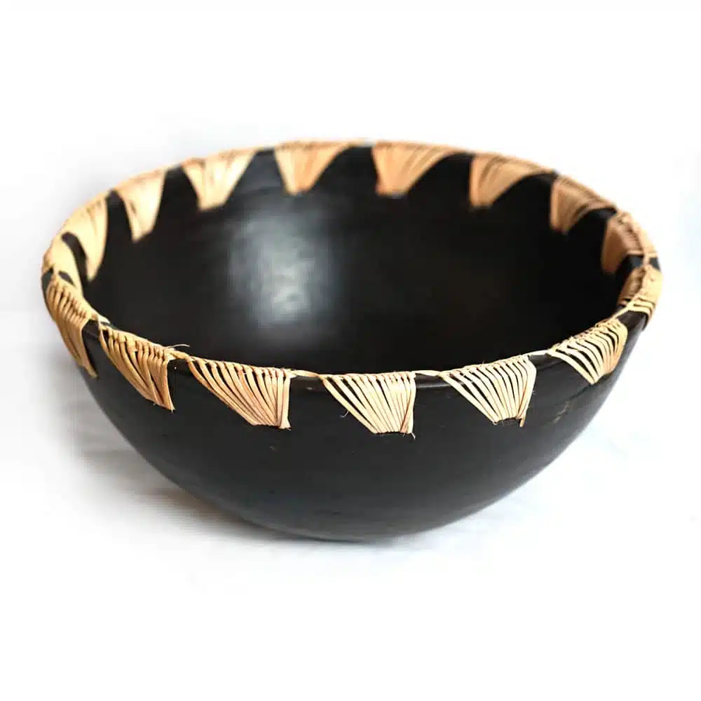 Material: Schwarze Keramik, mit handgefertigten Verzierungen aus Seegras