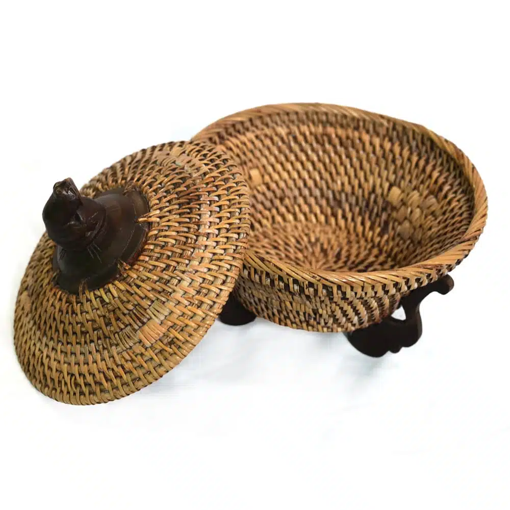 Schale mit Deckel aus Seegras und Teakholz – Balinesische Handarbeit