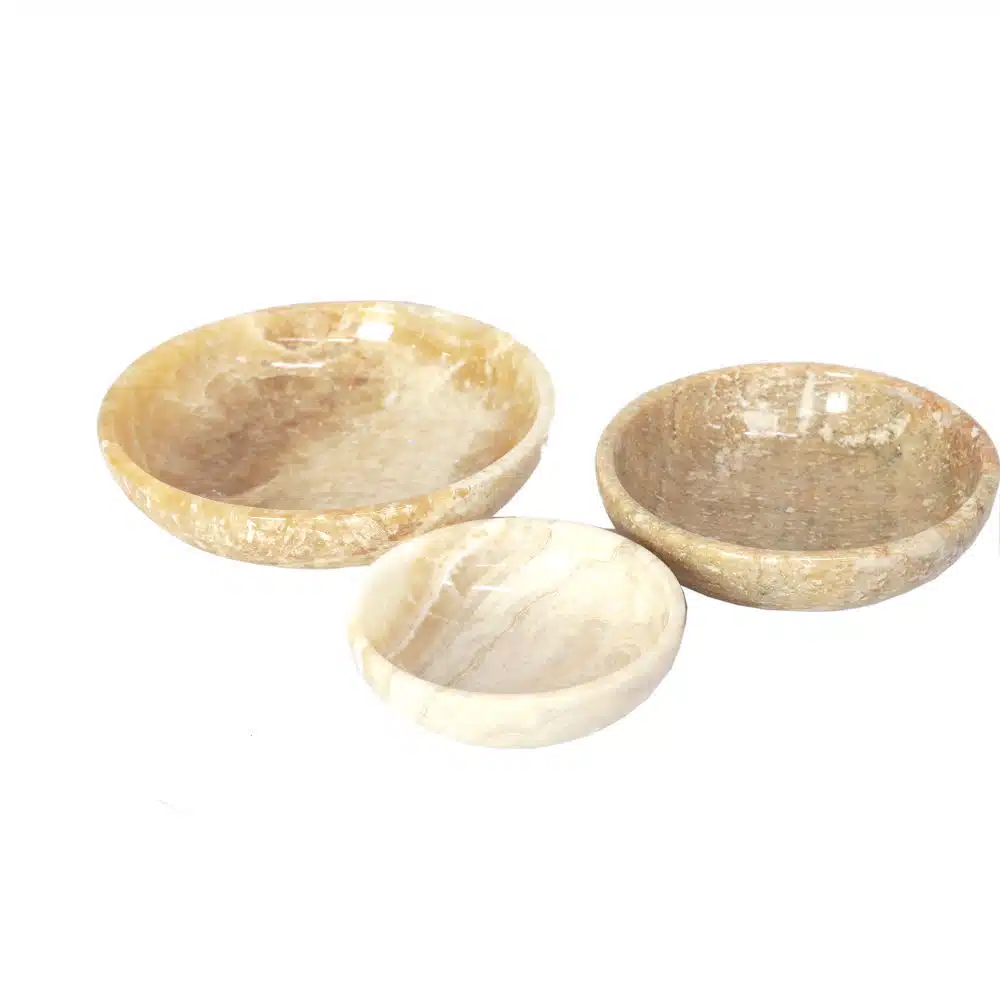 Diese exquisite Schüssel aus edlem Onyx besticht durch ihre elegante, cremefarbene Oberfläche und natürliche Maserung, die bei jedem Stück einzigartig ist. Mit einem Durchmesser von 30cm eignet sie sich ideal als Obstschale, bietet jedoch vielseitige Einsatzmöglichkeiten – ob als dekoratives Element oder funktionales Highlight in Ihrem Zuhause. Die sanften, organischen Linien des Onyx verleihen der Schale einen luxuriösen und zeitlosen Charakter, der jedes Ambiente aufwertet. Durch die individuelle Maserung wird jede Schüssel zu einem unverwechselbaren Unikat, perfekt für alle, die exklusive Materialien und natürliche Schönheit schätzen.
