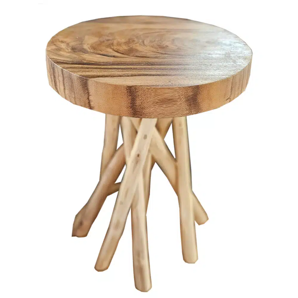 Taru Hocker: Massives Teakholz, Astbeine, handgefertigt, Ø 34 cm, Höhe ca. 45 cm