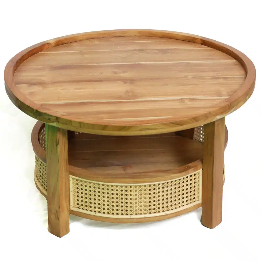Anyaman Teakholz Tisch, rund mit Rattan-Verzierungen, Ø 72 cm