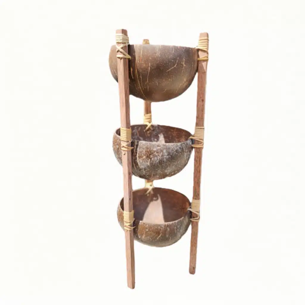 Tiga Etageren-Schale: Kokosnuss & Holz, dreistufig, handgebunden