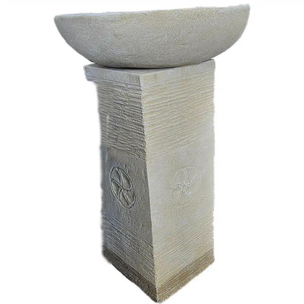 Die Vogeltränke ist nicht nur ein dekoratives Element, sondern auch ein Ort, an dem Vögel Erfrischung finden und der Garten zum lebendigen Rückzugsort wird. Alternativ kann die Schale mit Pflanzen bepflanzt werden und so als außergewöhnlicher Blickfang dienen. Das kunstvoll verzierte Design verleiht der Schale einen zeitlosen Charakter, der sich harmonisch in jeden Gartenstil einfügt.
